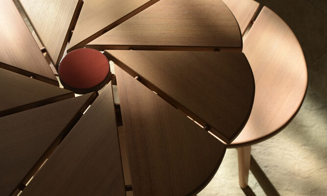 Elle fait partie de ma collection ‘capture de mouvement’ qui a vu naître déjà plusieurs modèles de tables de taille différente depuis 2008. Un concept qui permet les mouvements naturels du bois que j’ai inventé surtout pour des tables d’extérieur. FLEUDiA peut se commander sur mesure avec votre choix de bois et de la couleur…
